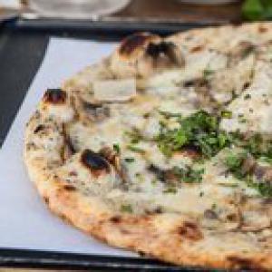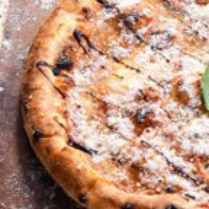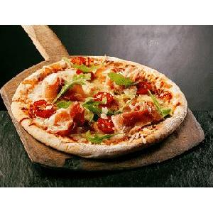 Jambon blanc italien, roquette, mozzarella, creme balsamique, champignons frais, sauce tomate, parmesan